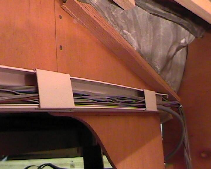 Um unnötigen Kabelsalat zu vermeiden habe ich die Kabel in offene Kabelkanäle oder bei nur wenigen Kabeln in Ösenschrauben verlegt.